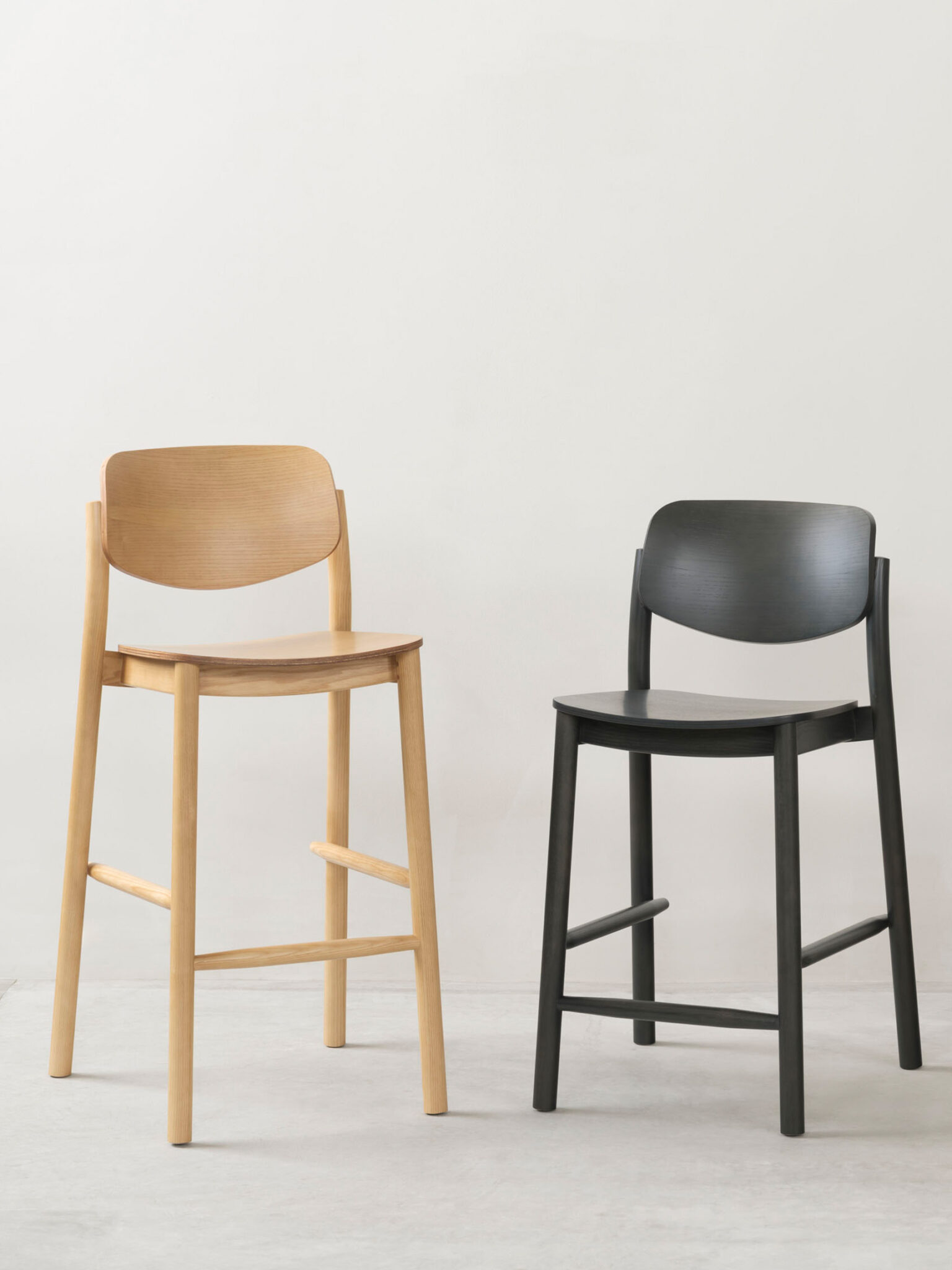 The original Zunto chair had a nice and stocky presence, which established an identity for the collection. Its comfort was very well received, and we thought it was worth trying in high chair and stool situations. It features a comfortable and accommodating large backrest suitable for both work environments and hospitality settings. They are available in two heights.